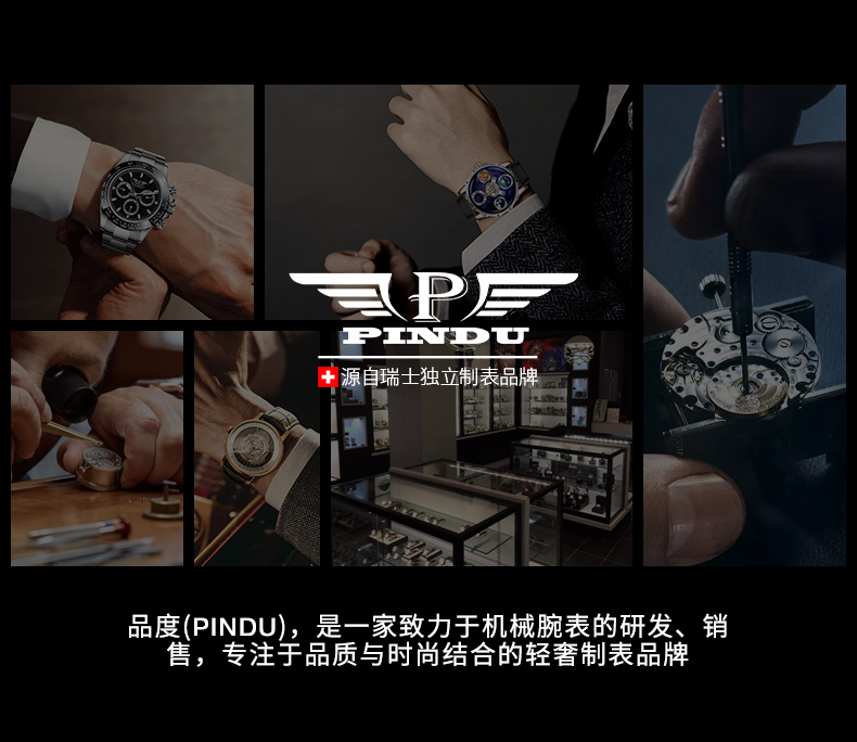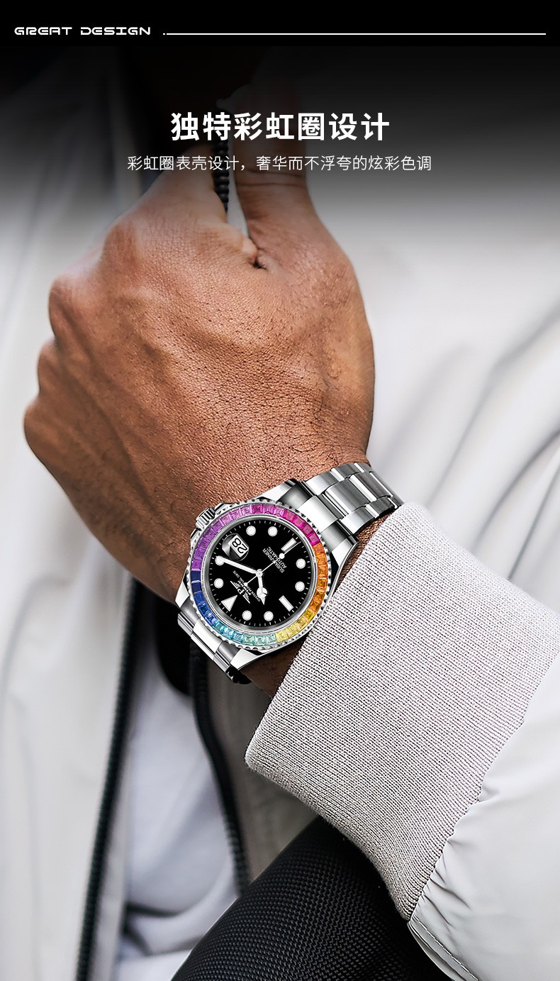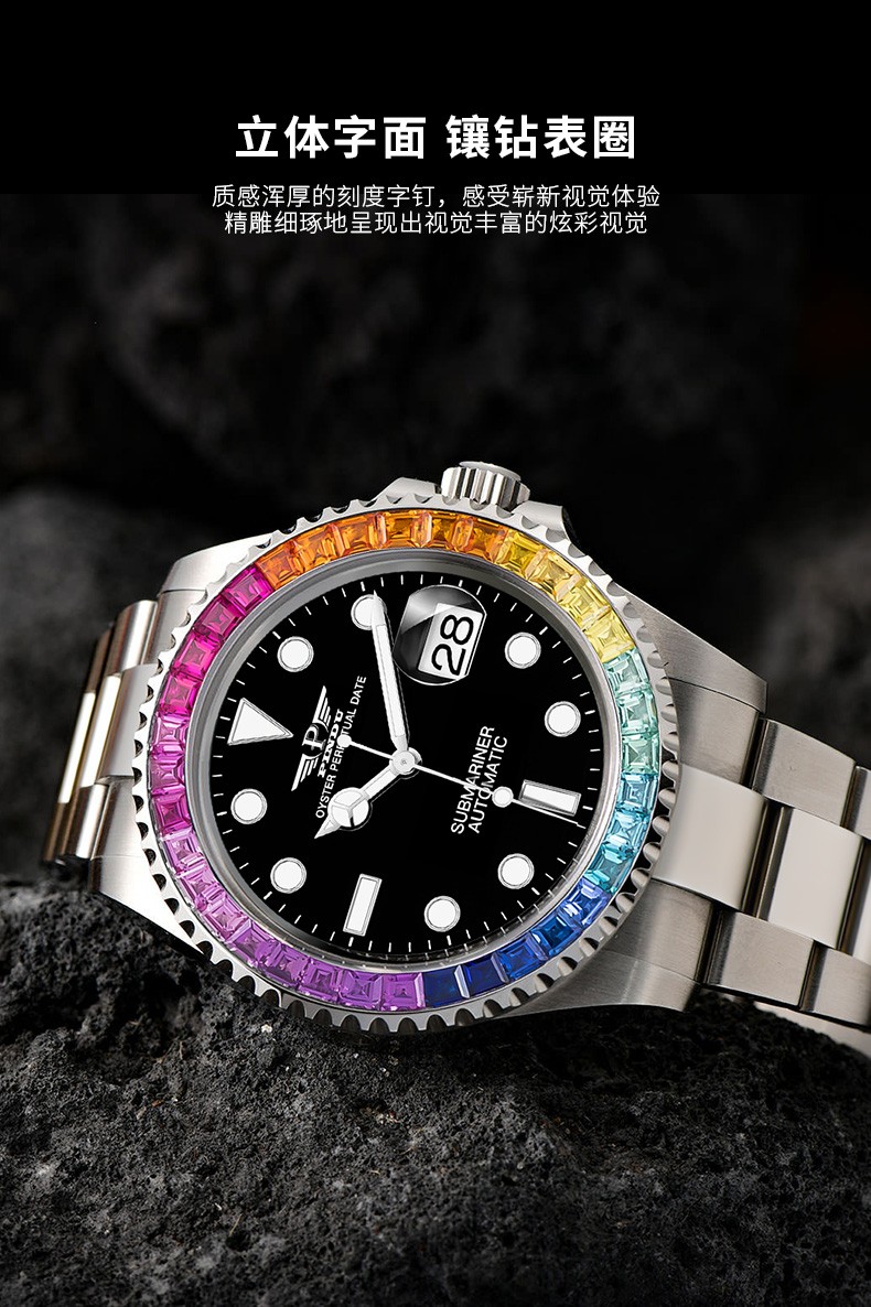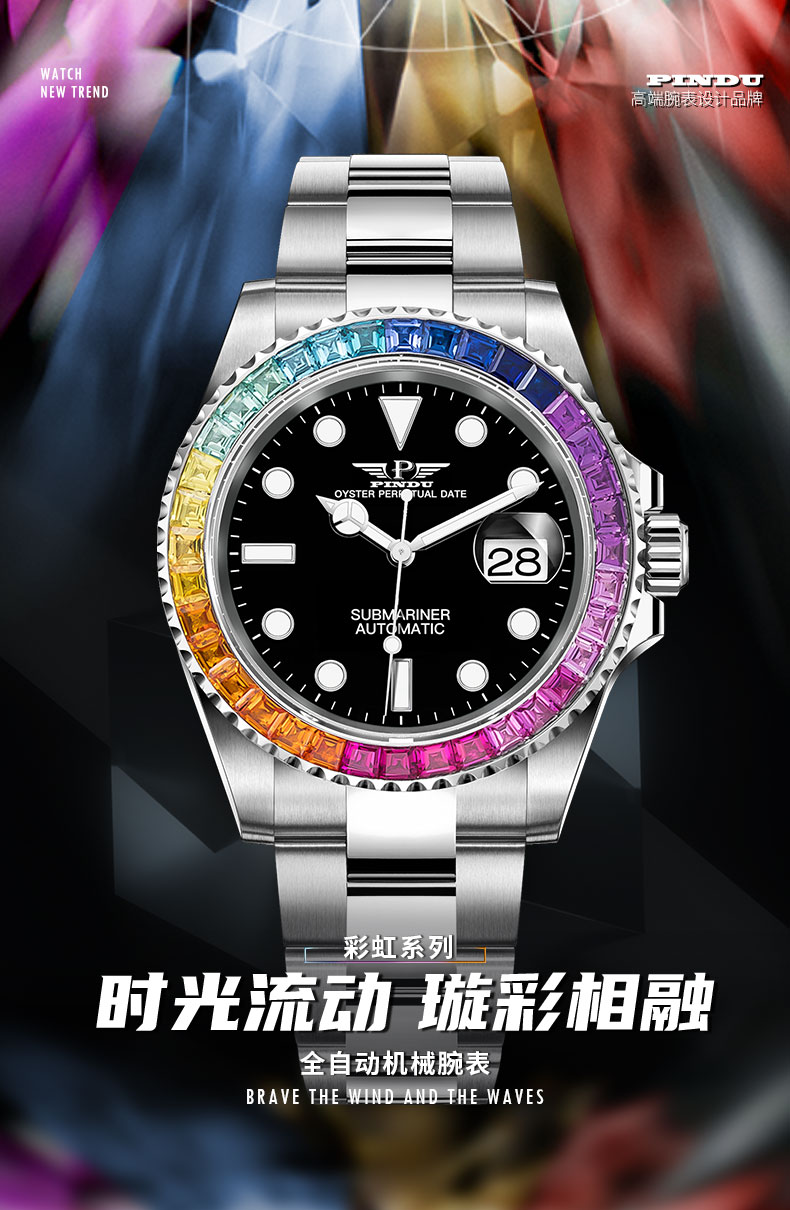 品度(PINDU-6528)官方正品彩虹冒险家手表多功能夜光全自动机械表