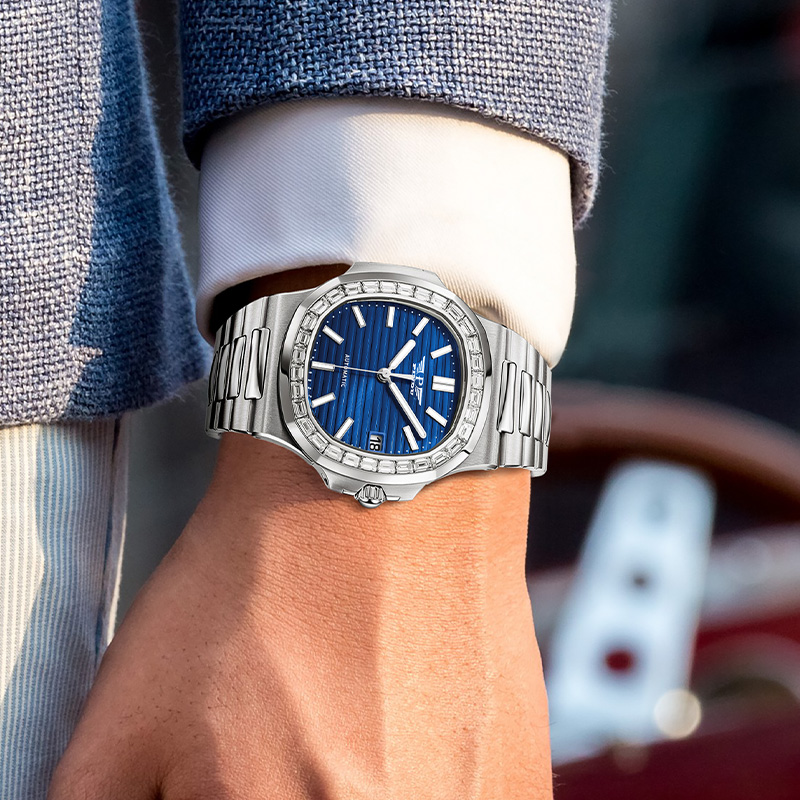 品度(PINDU-6501)男士时尚鹦鹉螺满天星手表大表盘个性休闲商务