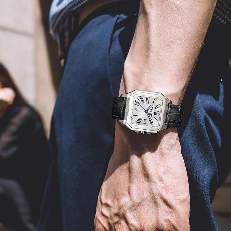 品度(PINDU-6515)官方正品坦克方形手表男士防水手表方型自动机械腕表