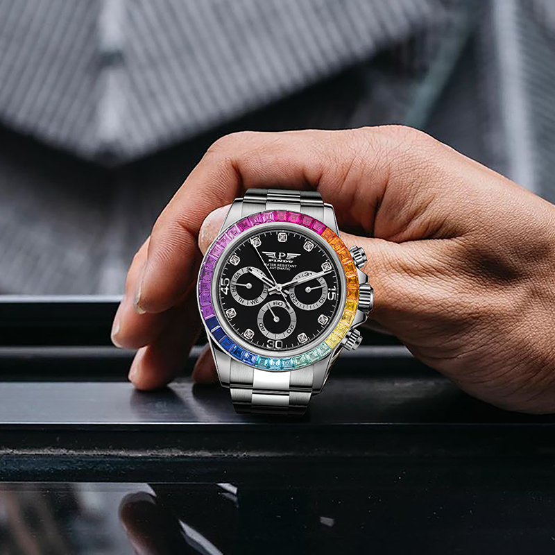 品度(PINDU-6517)官方正品彩虹迪手表多功能夜光全自动机械表