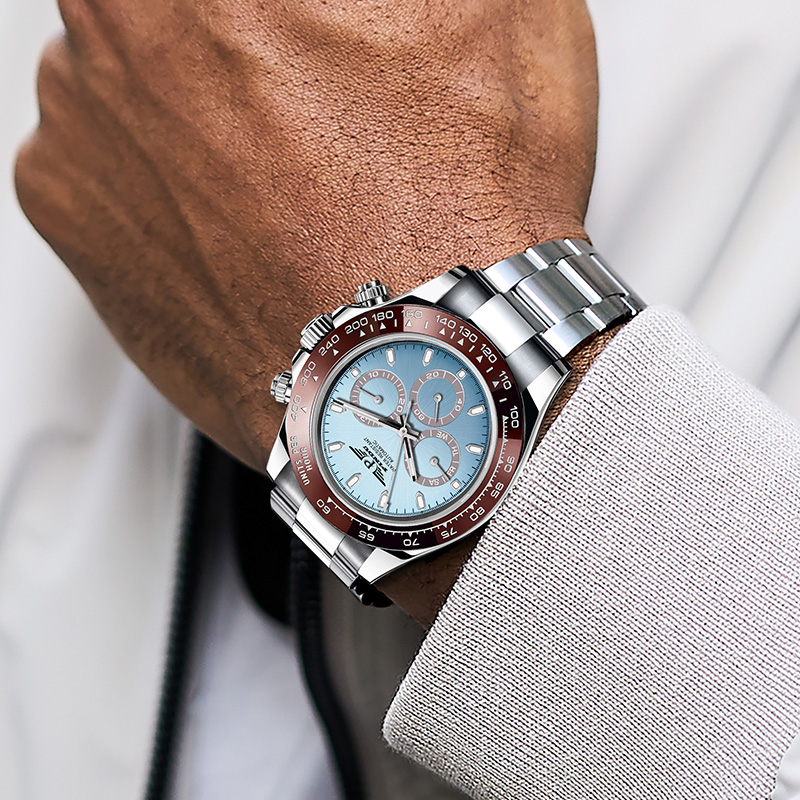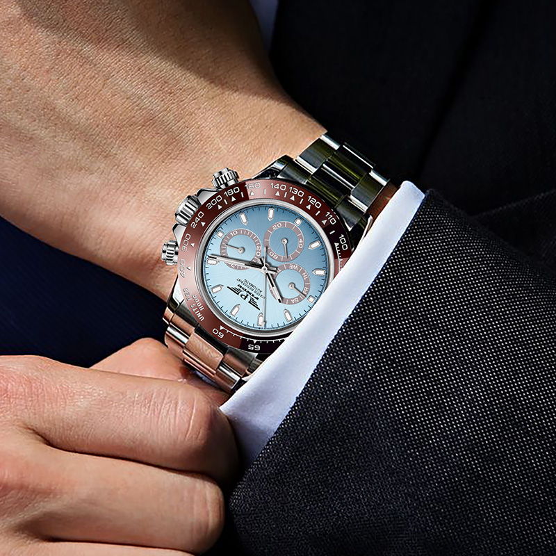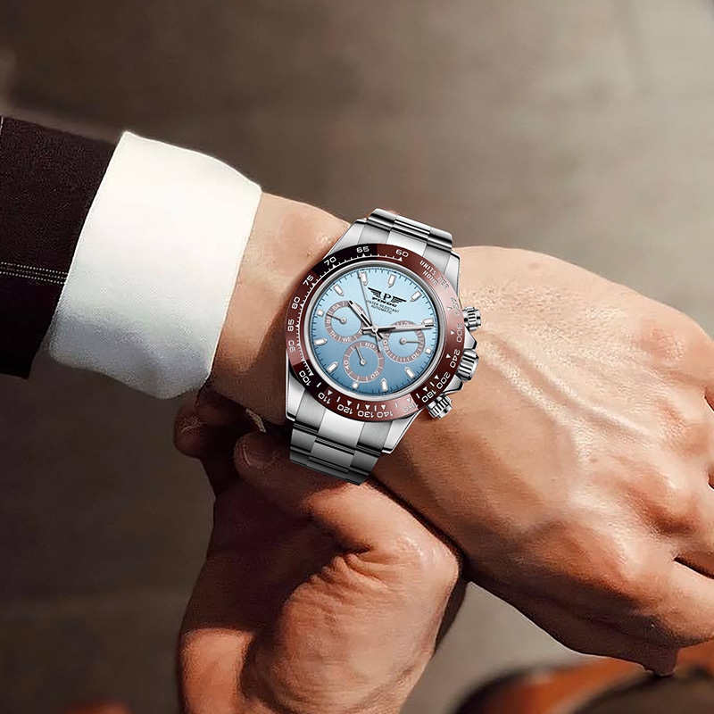 品度(PINDU-6505)蓝面迪通拿手表多功能夜光全自动机械表