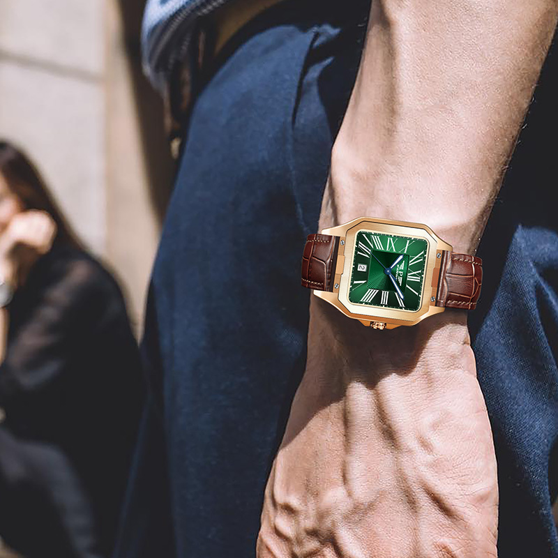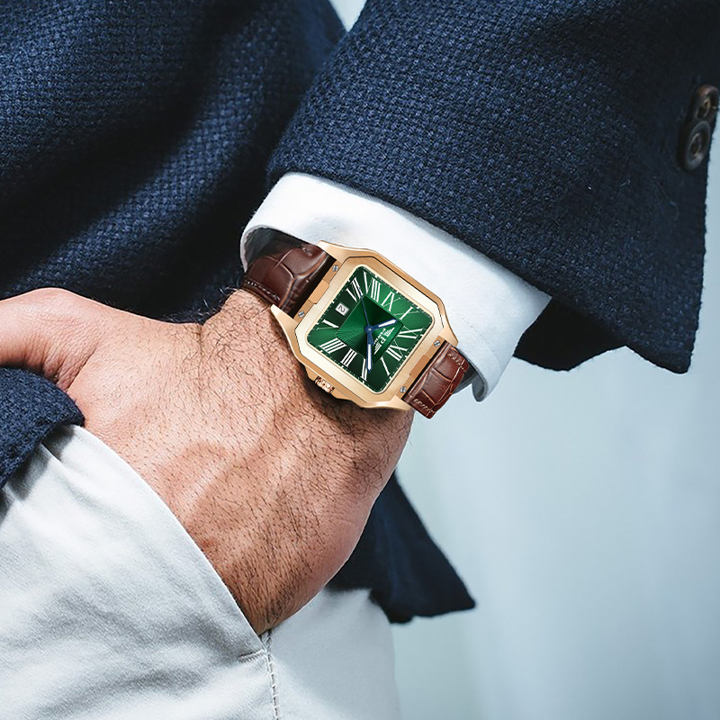 品度(PINDU-6515)官方正品坦克方形手表男士防水手表方型自动机械腕表
