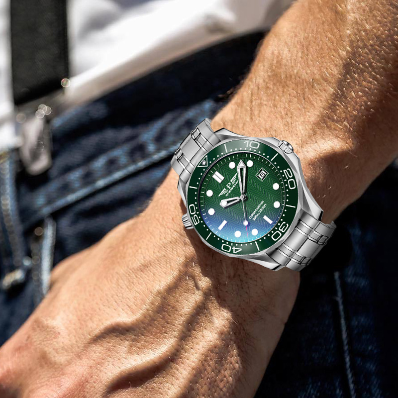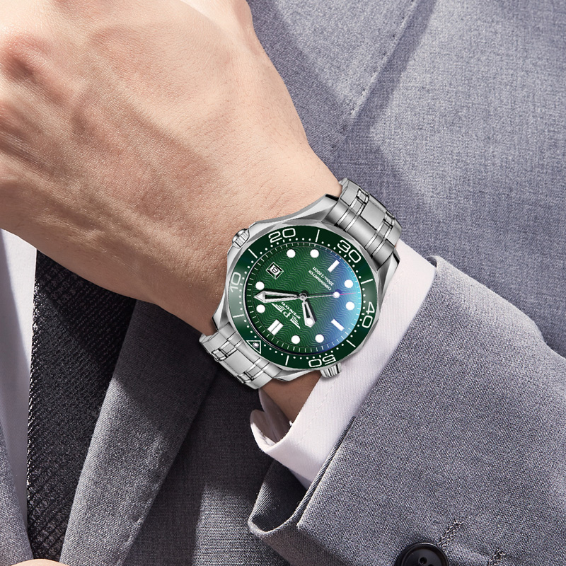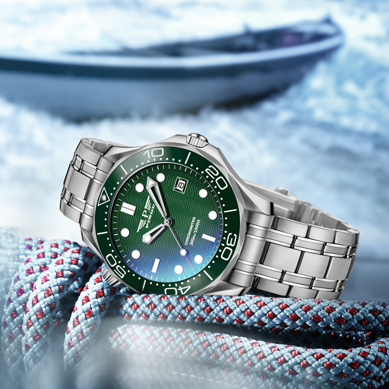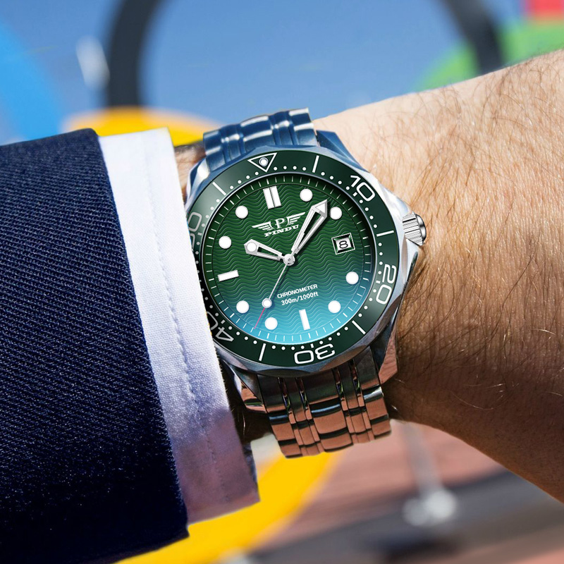 品度(PINDU-6508)正品绿色海马手表男士运动自动机械腕表